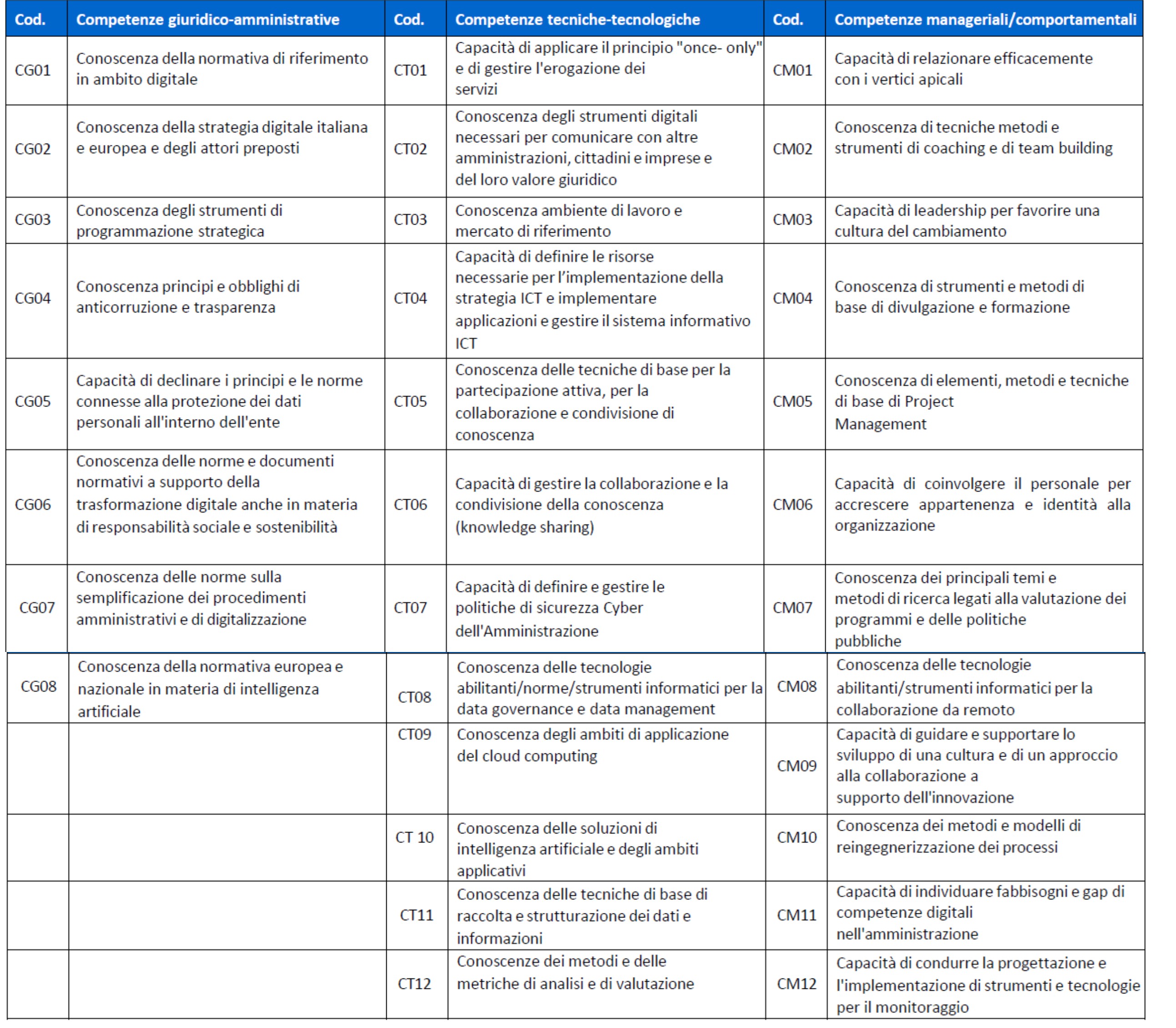 Il documento è molto interessante e pratico, in quanto presenta i risultati dei laboratori svolti sul campo da AgID con i Responsabili della Transizione Digitale (RTD) di Amministrazioni Centrali e Locali: insieme per confrontarsi e disegnare quale siano le reali competenze necessarie da mettere in campo per gestire la transizione digitale nei contesti quotidiani.